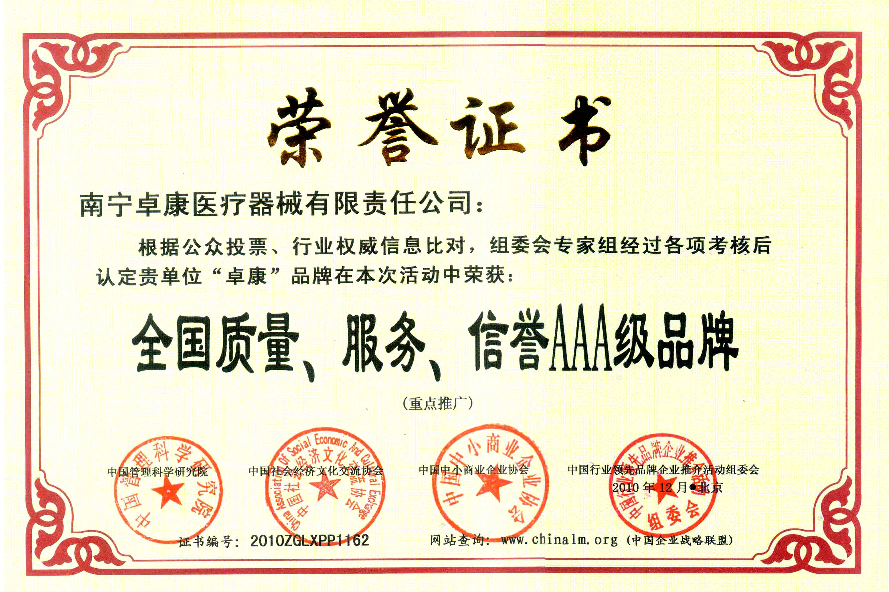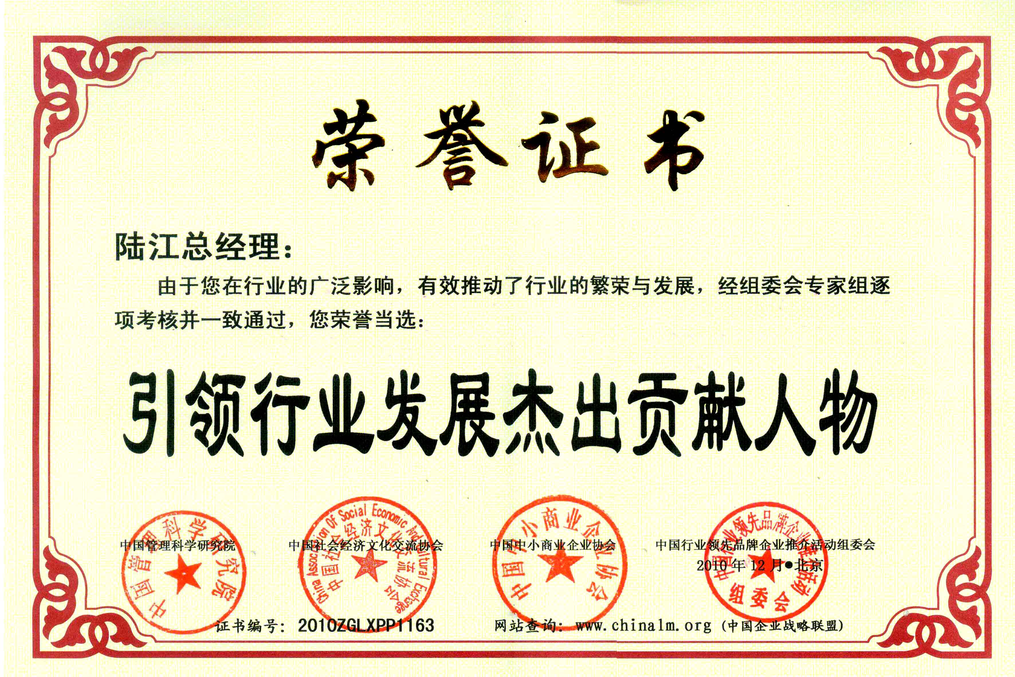 陸江榮獲引領行業(yè)發(fā)展杰出貢獻人物證書 --------卓康公司榮獲全國質(zhì)量、服務、信譽AAA級品牌證書